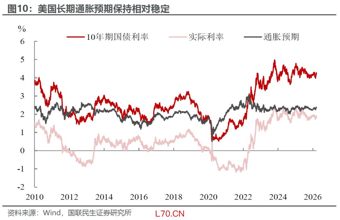 当然,当前最大的潜在风险点还是在于国际油价上涨带来的通胀传导。但对比2022年油价冲击,彼时全球经济处于疫后复苏阶段,欧美财政与货币政策同步发力,居民消费需求快速修复,上游油价上涨得以顺畅传导至成品油、化工品及消费、服务终端。而在当前偏弱的基本面环境下,通胀持续的时间和扩散度相较2022年会相对下行,从当前盈亏平衡通胀率来看,长期通胀预期仍保持相对稳定,并未出现明显失控迹象,这也进一步支撑了降息的判断。