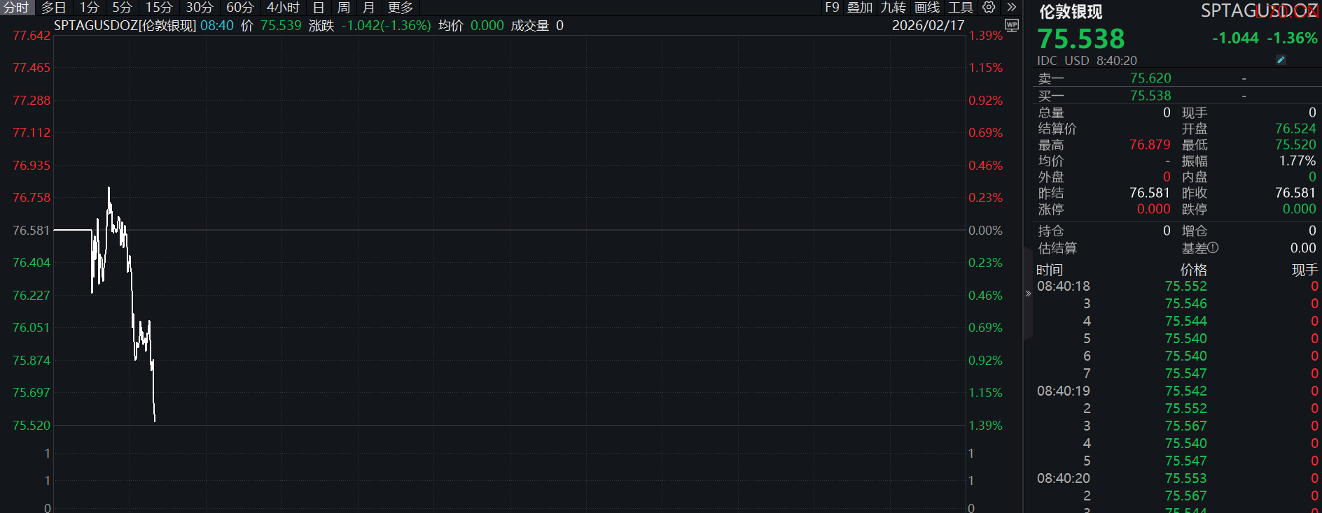 现货白银跌超1%