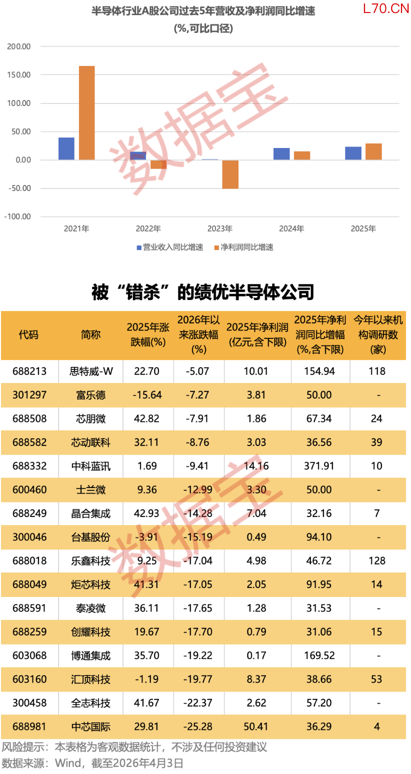 半导体行业营收及净利润加速增长 16只被“错杀”的绩优股曝光