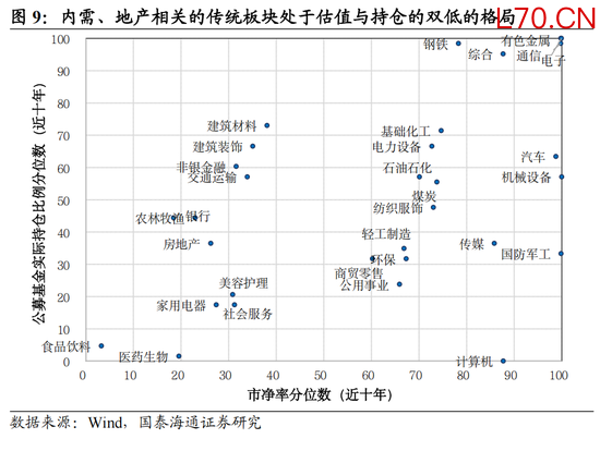 价值也会有春天,重视低估值与低持仓的顺周期价值板块:中国经济工作的重心正转向内需主导,并作为首要任务,内需复苏、物价回升与地产企稳会推动经济预期上修。在愈发复杂的国际形势和国内稳增长的压力下,扩大内需当前正式从一项相机抉择的短期政策转变为一项贯穿未来十余年的中长期国家战略。展望未来,我们认为扩大内需政策路径日渐清晰:一是重视“投资于人”,着力补齐民生短板,推动居民增收;二是服务消费提质扩容,顺应消费升级趋势,推动供给侧结构优化;三是稳定地产价格预期,扩大有效投资,通过畅通经济循环,进一步稳定居民财富效应与改善收入信心。当前地产投资绝对值与下滑幅度均接近美日韩经验水平,房价降幅已逼近全球小型房地产泡沫经验水平,底部区间已现。内需价值板块当前处于估值与持仓双低的格局,反映了多年下行后,市场各方对于内需的极度悲观的一致共识。随着预期企稳,估值有望率先修复。另一方面,周期板块受全球地缘冲突风险影响价格保持强势,2026年以来呈现金油共振现象,展望未来,我们认为一方面要重视内需价值相关的建材/化工/地产/社服等,另一方面,全球大宗品如有色金属、石油石化、农业价格也有望保持强势。