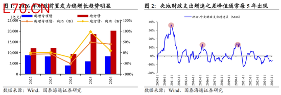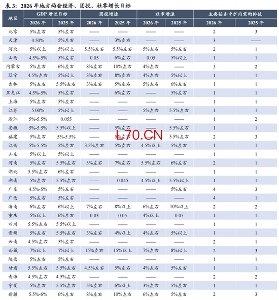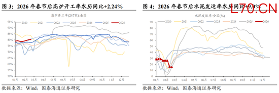 ▶全国两会召开在即,财政发力前置,市场有望上修中国经济预期。2025年中国科技突破和经济结构转型极大的振奋了社会发展信心,但近年来地产剧烈下滑和内需持续偏弱成为了居民预期和企业投资的重要掣肘。2月15日,总书记发表署名文章“当前经济工作的重点任务”中明确提出坚持内需主导,并表态“推动投资止跌回稳”。1)在政策预期上,全国两会召开在即,我们认为在赤字率、地方政府专项债、特别国债的规模安排会好于市场此前预期,收储+城市更新有望成为稳定地产的重要抓手。2)在地方两会上,各省政府工作报告中均提及“实现‘十五五’良好开局”的重要性,半数以上省份明确“稳增长、扩内需”为2026年首要任务。3)从行动上看,2026年财政前置发力明显靠前,1-2月新增专项债累计发行0.83万亿元,同比增长39.6%,有望推动实物工作量的形成与经济开门红。数据显示,春节后全国工地开复工率、资金到位率农历同比分别增加1.5%、9.4%,高炉开工率、水泥发运率均高于2025年农历同期。