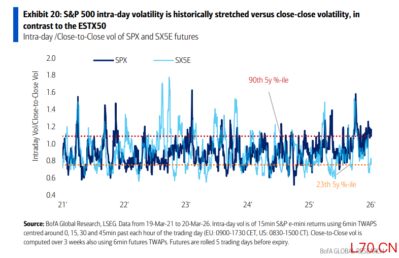 “由于市场消化了特朗普总统关于‘暂时停止在伊朗的敌对行动’的声明,资产价格随之跳涨。这再次提醒我们,日内波动率比收盘波动率更能捕捉当前的股票市场风险。”