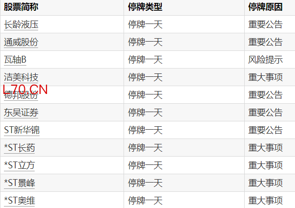 A股停牌提示:11股今日停牌