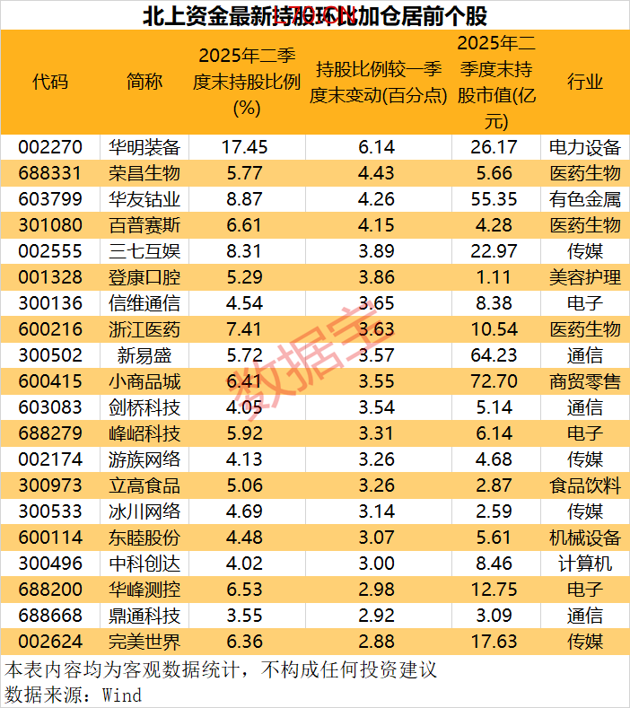 北向资金持股公布 7大行业持股数二季度环比加仓超10%