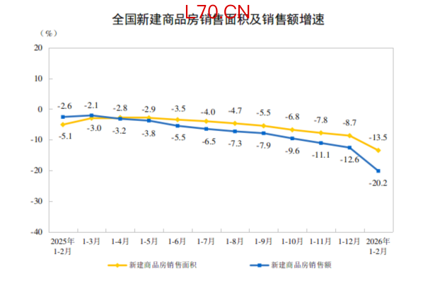 国家统计局:1—2月份,新建商品房销售面积同比下降13.5%