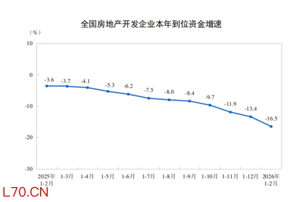 国家统计局:1—2月份,房地产开发企业到位资金同比下降16.5%